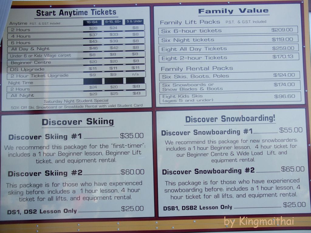 อัตราค่าเล่นสกี