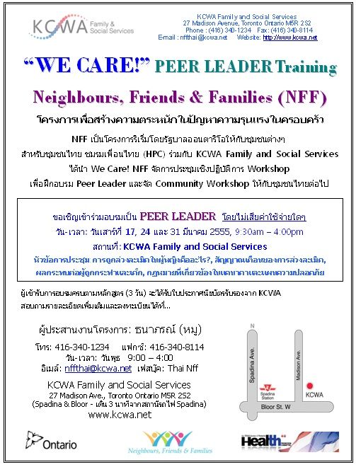สถานที่: KCWA Family and Social Services (near Spadina Subway Station)